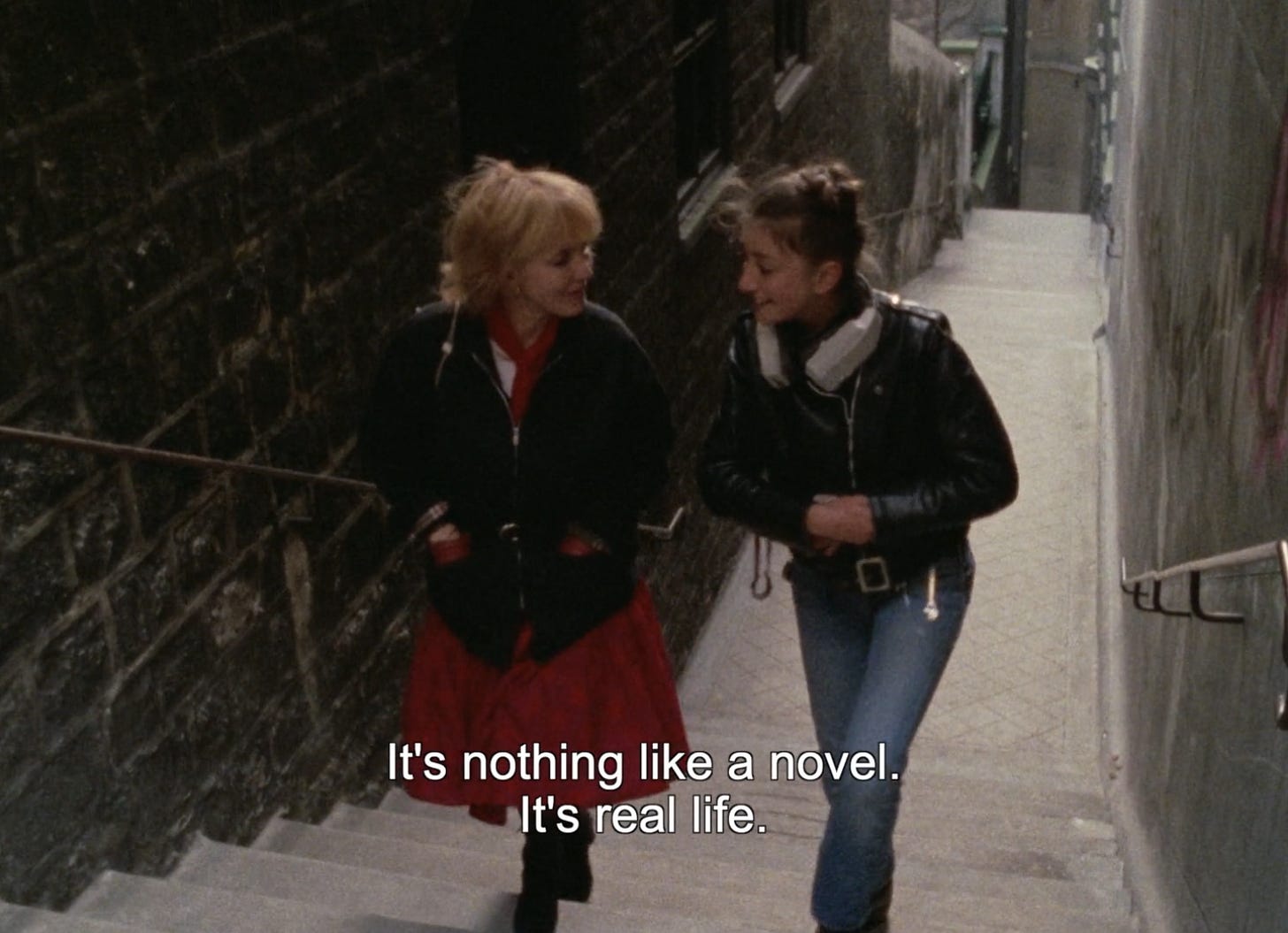 This is not Rivette’s strongest movie—that title would probably go to his infinitely charming Celine and Julie Go Boating, from seven years earlier—but Le Pont du Nord continues his familiar blend of off-kilter games and a fascination with the act of storytelling itself. Starring the mother-daughter duo Bulle Ogier and Pascale Ogier, the film follows a bank robber (Bulle Ogier) after she has just been released from prison; wandering Paris without any real goal in mind beyond reuniting with her boyfriend (Paul Clementi), she bumps into a biker (Pascale Ogier), and the games begin. A mystery, as found inside a briefcase, ensues; the two drift through Paris discussing the nature of reality; it all ends up converging into a real-life version of the French board game, Game of the Goose. “It’s nothing like a novel,” one character says to another at one point, as though baiting me to take a photo of the screen and post it to my Instagram story (indeed, I did). “It’s real life.”